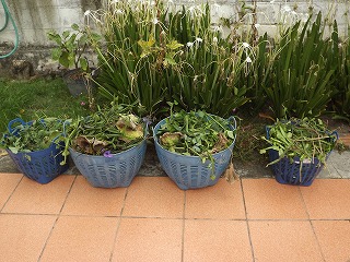 塀のところの草取り 四籠いっぱいになって1時間で終了