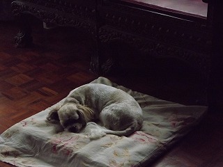 霧雨の中8時まで散歩 ご飯勧めるも食べないルン しょうがないかー・・・