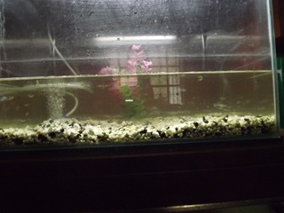 頂いた水槽に2日前水を入れておき、今日グッピー20匹ほど水槽へ