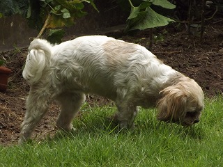 | 庭に出て・・ |