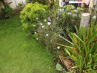 曇り空のうちにと雑草取りを始め、1時間半で籠いっぱい 終了・・・