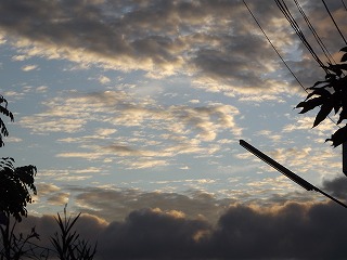朝の雲も消えるも、晴れたり曇ったりだが気温は高い・・・ 17時少し15分ほど雨