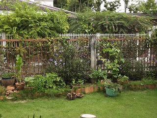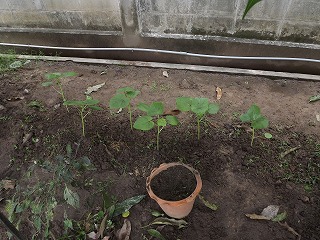 9時にオクラを鉢から路地に植え替えと塀の整え・・・40分だが汗かくなー・・・