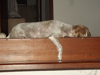 熊の手袋で20分ほど遊ぶとお疲れの様子 相棒の健康を願っているのだが・・・