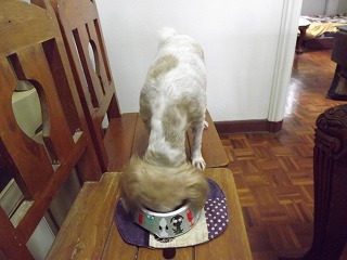 朝のご飯 待て!! |