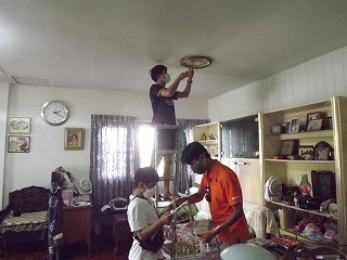少しお昼休みをして、13時半約束の水道と天井の電気修理