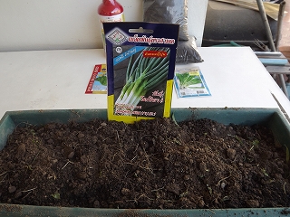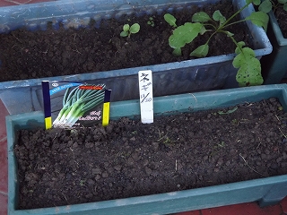 肥料を入れての、午後には種蒔き 日本ねぎとあるのが嬉しいなー