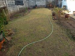 40分散歩終えて、ホールのつなぎ目テープ貼り、水撒き 今のところ無事水漏れは無いようだー・・・