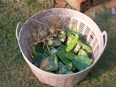 午後の一仕事 門の所の畑のウチワサボテン 1mほど2本撤収