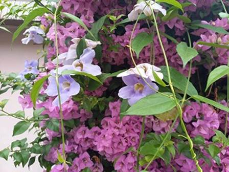 ベンガルヤハズカズラ ピンクはブーゲンビリア 拾って来た種 ウマノスズクサ?