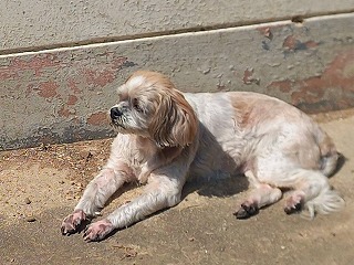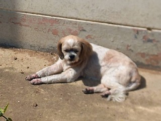 食後ルンちゃん外へ 見ていると畑をうろうろ 日光浴・・・