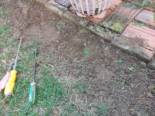 奥の(ゴーヤ)日当たりが強いのかとネット張りながら周辺の雑草取り ついでに日本ネギの側溝作成!