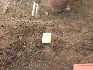 トウモロコシ 1か所に2個 8か所に種蒔して水撒き 9時半終了