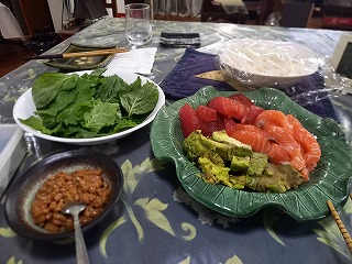 水撒きしてから17時過ぎ夕食 その前に大葉紫蘇収穫 海苔と紫蘇での手巻き寿司 紫蘇が良かったなー!