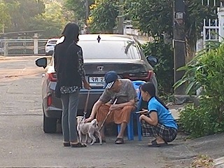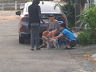 7時過ぎいつもの散歩へ ルンちゃん元気良いのだが・・・ 愛想良いのが特徴だろうなー・・・