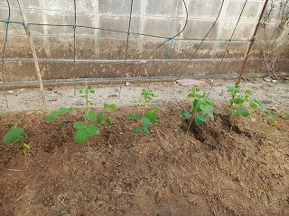 作業開始 ベランダ周りの雑草取りしていたら、枝豆5本路地植えに これで11本 水撒きし10時前終了!