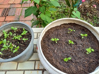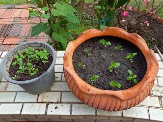 8時に帰り水撒きしてから、(紫蘇の鉢分け) ベランダ前の畑雑草取りをいやいやしながらする