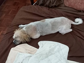 居間での就寝に慣れてきた・・・ これで乗り切るしかない 涼しい所へ移動しながら・・・