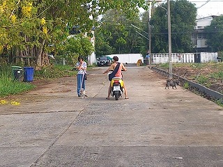 背丈は低いが雄しべ出て来た モトサイでの犬3匹散歩