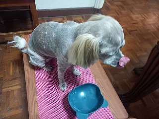 ルンちゃん今までで一番短いのでは・・・毛がバリバリしている? 暑い一カ月乗り越えろ!