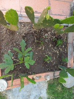(オクラ) 連作障害があるので錦鯉近くの畑に路地植え そしてベランダ前に(カラジューム)移動