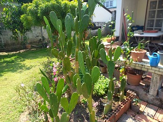花より団子だが、これも悪くはない・・・ あちこちから花が咲き始めている ウチワサボテン整理