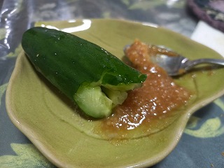 11時15分昼食 我が家のキュウリ(ルンにも少しおすそ分け!)と混ぜご飯