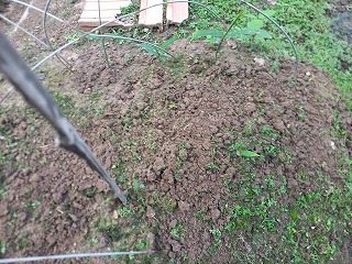 生姜畑に4本ほど芽が出ているが、新たに4・5本植える カラジュームかと思っていたが、(里芋)?