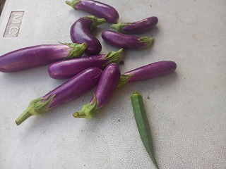 ヒルの残りのナスとオクラ1っ本 大き目で食べ応えあり ルンちゃんはいつも通りしっかりと食べている!