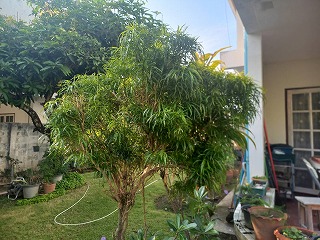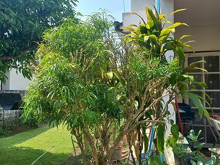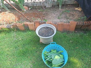散歩から帰り収穫してから仕事 ウチワサボテンも伸び放題 木も伸び放題 やらねば―・・・