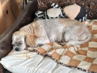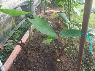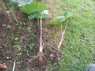 案の定里芋だったので、キュウリ畑にもう少し増やそうと植替え ルンちゃんは爆睡!
