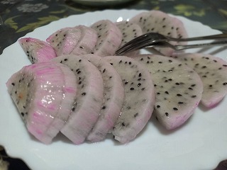 5時半起床 パンとマンゴーとドラゴンフルーツ 朝ドラ見ながら・・・ ガード下の女王?