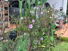 雨の中見送り アザミノルイラソウ ピンクと紫の2種類 体拭いてさっぱりかー