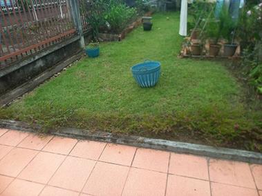 帰宅してベランダ前の雑草取り 1時間半だがなかなかはかどらないなー 芝刈り機でやりたいが・・・
