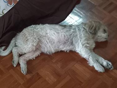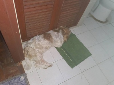 午後15時過ぎ室温は30.2℃ ルンちゃんには暑いのか― ベランダへ行ったりトイレのタイルに駆け込んだり・・・