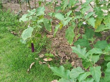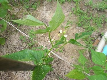 青空は嬉しいが気温上がる・・・ 蔓なしインゲン 花が咲く ナス下火になって来た・・・