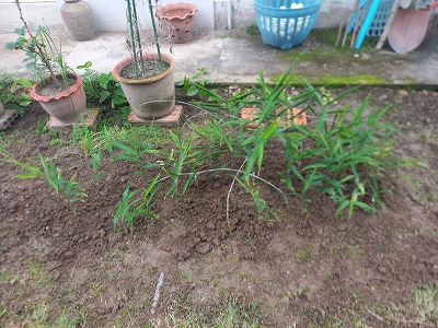 10時半雨が降って来たのと生姜株分けして30本ほどにして終了 トウモロコシ直したいが・・・