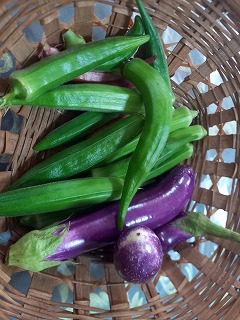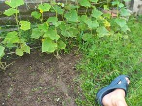 一日でこんなに増える キュウリ畑 裏側はまだ雑草が・・・ オクラは順調だー・・・