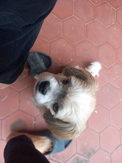 黒い雲が見えるのでいつもより20分早く散歩へ ルンちゃんは散歩が好きなのか、広場で小さいおやつ2つを・・・