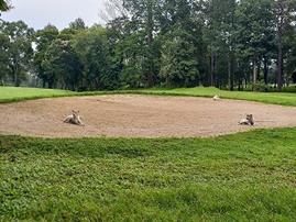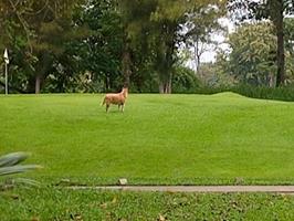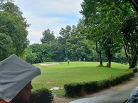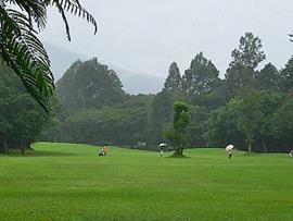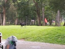 霧雨が降る中、リエさんとルンに送られてランナーゴルフ場へ