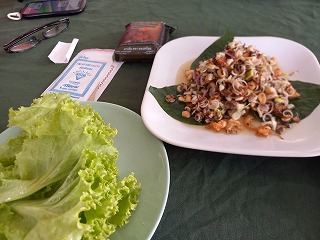 ヤムタクライを食べながら、話はいろんな方向へ・・・ 明日の我が入院にも・・・