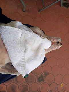 雨はすぐ上がっていつもの時間に散歩へ おばあちゃんにも挨拶し40分散歩 風はあるが汗もかく・・・