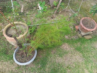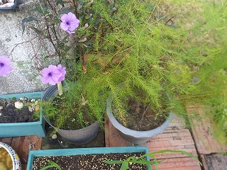 10時からLPGA上海なのでその前に一仕事 アスパラガスの鉢から路地植えに 地下茎がそこから芽が出ると・・・