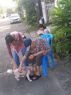 いつもより10分遅く3人での朝の散歩 おばあちゃんに会えるのはルン同様嬉しいものだ!