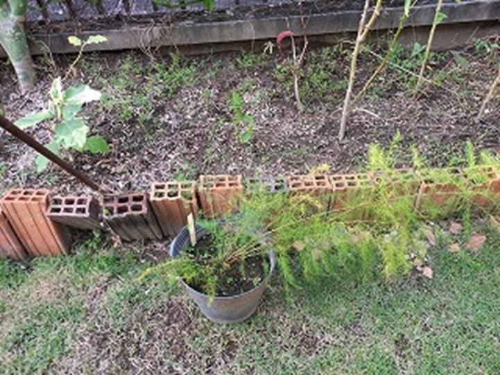 3つ目のアスパラガス この辺に植替えしようと写真に そうしないと気力が薄れてしまうし雨だとダメなんだから・・・