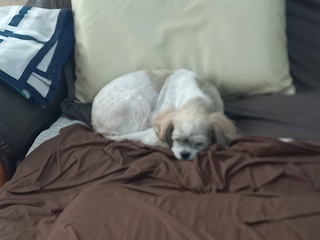 今日もいつものように朝の散歩へ 帰ってルンちゃんのシャンプー ちゃんと拭いて乾かすが赤い所はまだあるなー