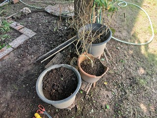 今日も庭仕事 4個目のアスパラガス 鉢から路地植えに・・・その周りの雑草取りもして・・・