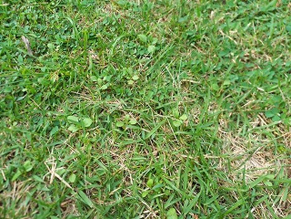午後にももう一仕事 芝の中につる状の草が、これが芝の発生を妨害している 手ごわいなー