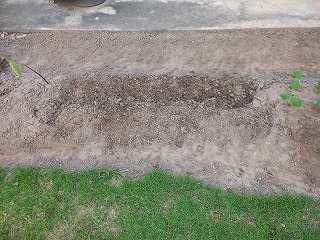ここに土を柔らかくする肥料を混ぜて耕したかったんだが、体力が持たなく20cmほど土ほぐすだけに・・・