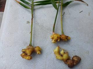 生姜を収穫し、前に頂いた柚子味噌でちびりちびりしながら・・・